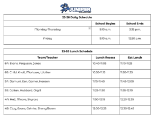 Juniper Daily Schedule